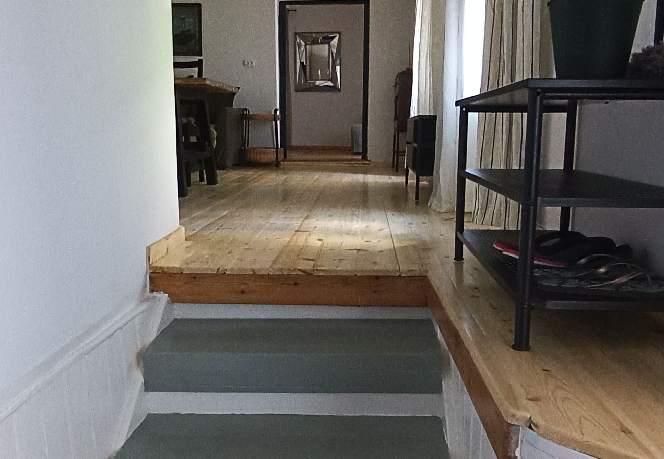 Casa di Lia is a delightful apartment in the center of Skiathos. It was fully renovated in 2024 and is stylish, comfortable and cosy. The apartment is 55 m² and sleeps 4 people by default, with the possibility to host 5 people. From the front door a small staircase of 5 steps leads up to the living area, which has an open plan kitchen, a big dining area for fun gatherings, a corner sofa bed, that very easily can be pulled out into a double bed, air-conditioning and television. Behind the living room the bedroom with a double bed and a seat that converts into a good single bed. The accommodation is equipped with the following items: iron, internet (Wi-Fi), hair dryer, air-conditioned, 1 fan, 1 TV. The open plan kitchen has the following equipment: glass ceramic stove and oven, refrigerator, freezer, dishes/cutlery, kitchen utensils, coffee machine, toaster and kettle are provided. Behind the kitchen is the bathroom which has a clever lay-out. The house is located in a small cobbled alley. To the right is the first beach within 750 meters walking distance. To the left you can reach the port in 3 minutes, or the mainstreet in 2 minutes.